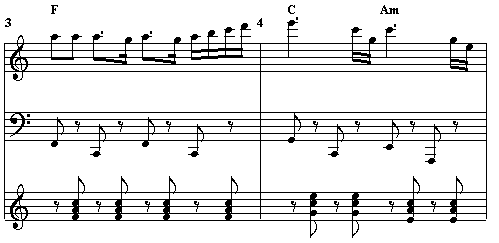 Musician can accurately analyze harmonies in a MIDI score to determine chord names and display them above the top staff, as illustrated below:
