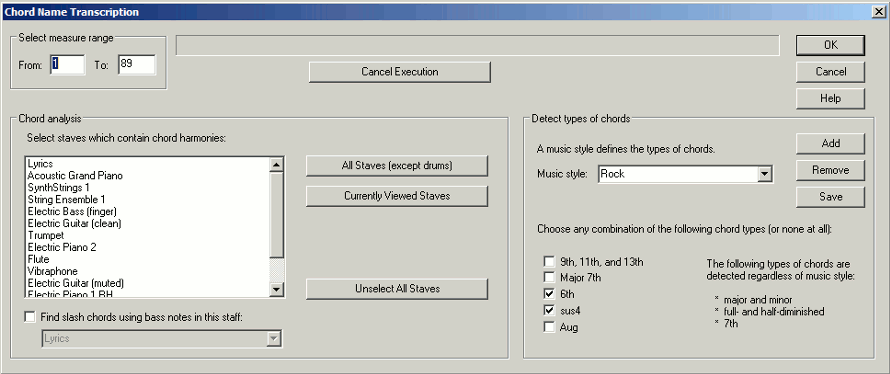 You select which staves (tracks) to use in the chord analysis, and let Musician do the work!