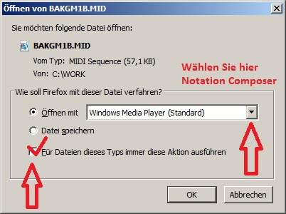 10. Wenn ich versuche eine MIDI Datei zu öffnen, startet der Windows Multimedia Player anstelle des Notation Composers (Musicians, Players).